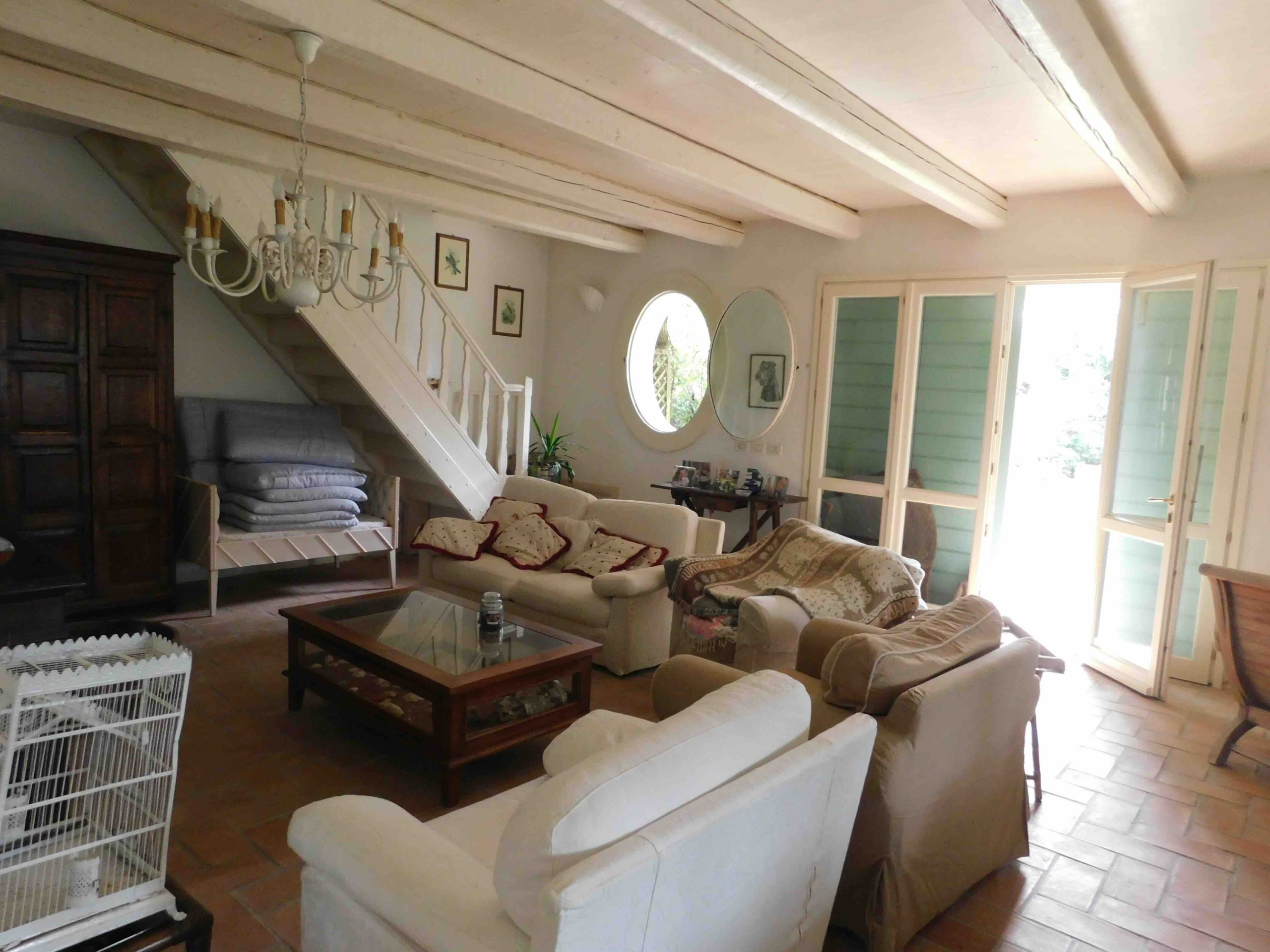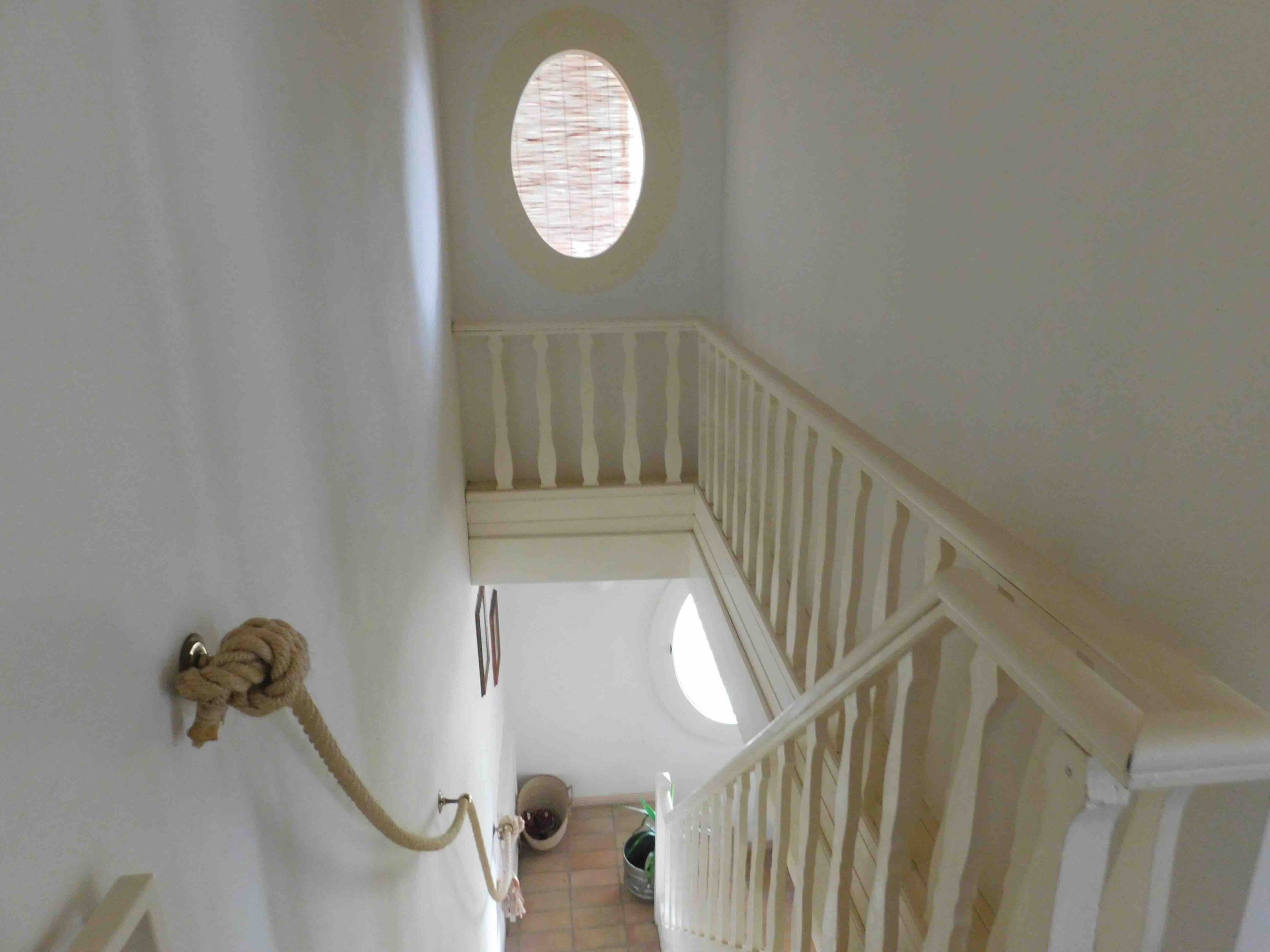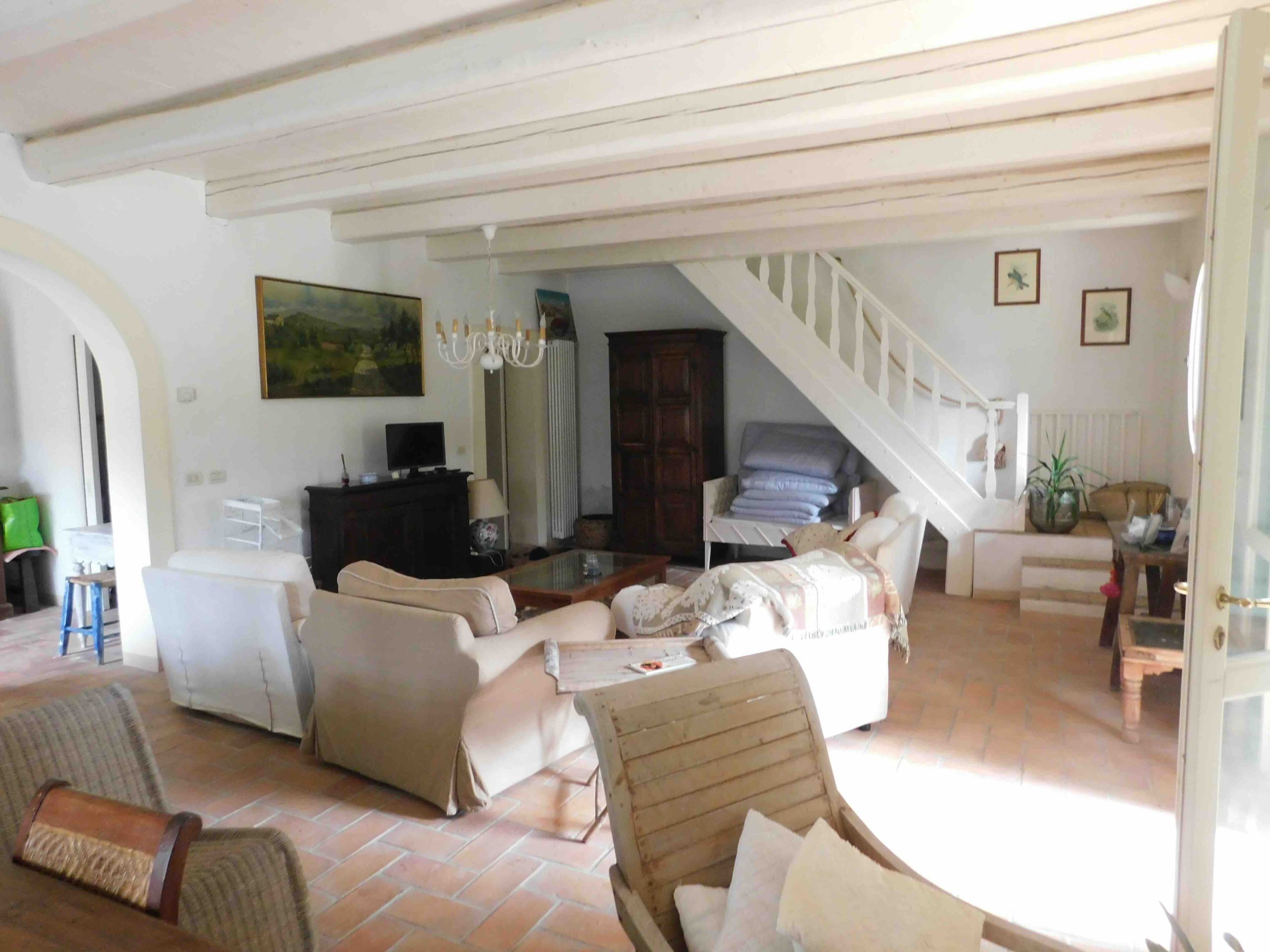Dal salone, tramite scala in legno, si raggiunge il piano superiore