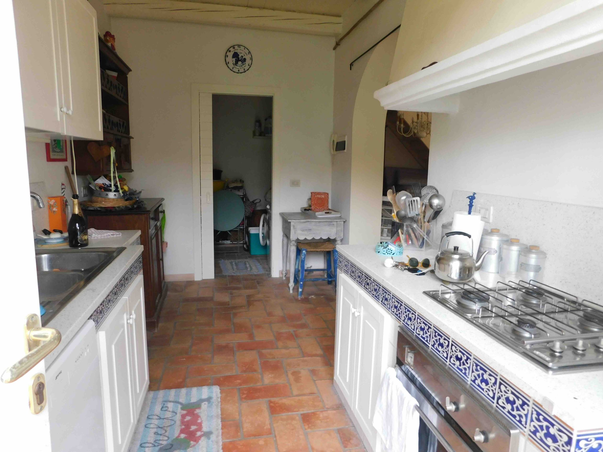 una cucina con dispensa, un antibagno e bagno ed, inoltre, di un bellissimo portico.